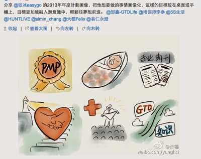 当然也有更加专业的人,比如@张冰easygo,下面是他的年度计划图像版: